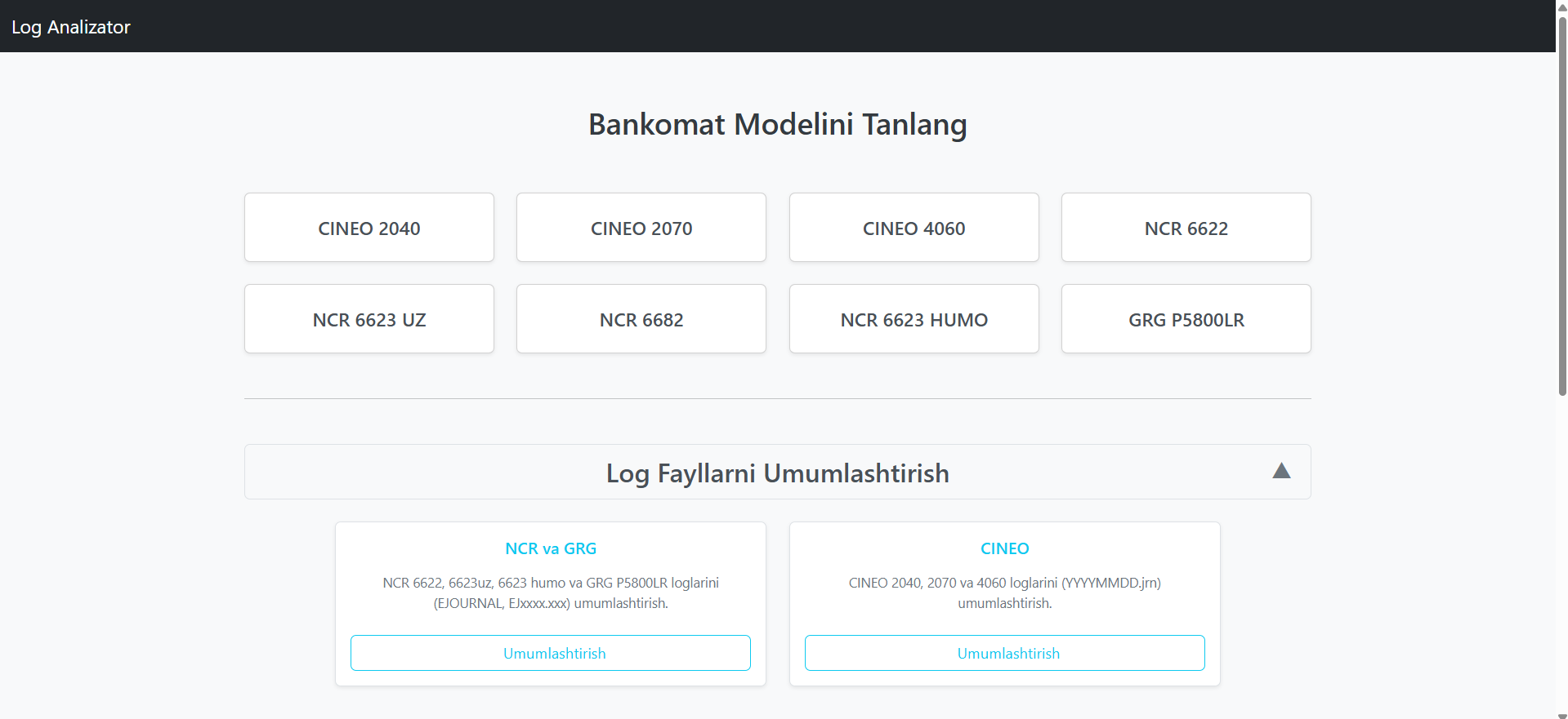 Веб-приложение для анализа логов банкоматов разных моделей: загрузка логов, парсинг транзакций/событий и экспорт результатов в Excel.